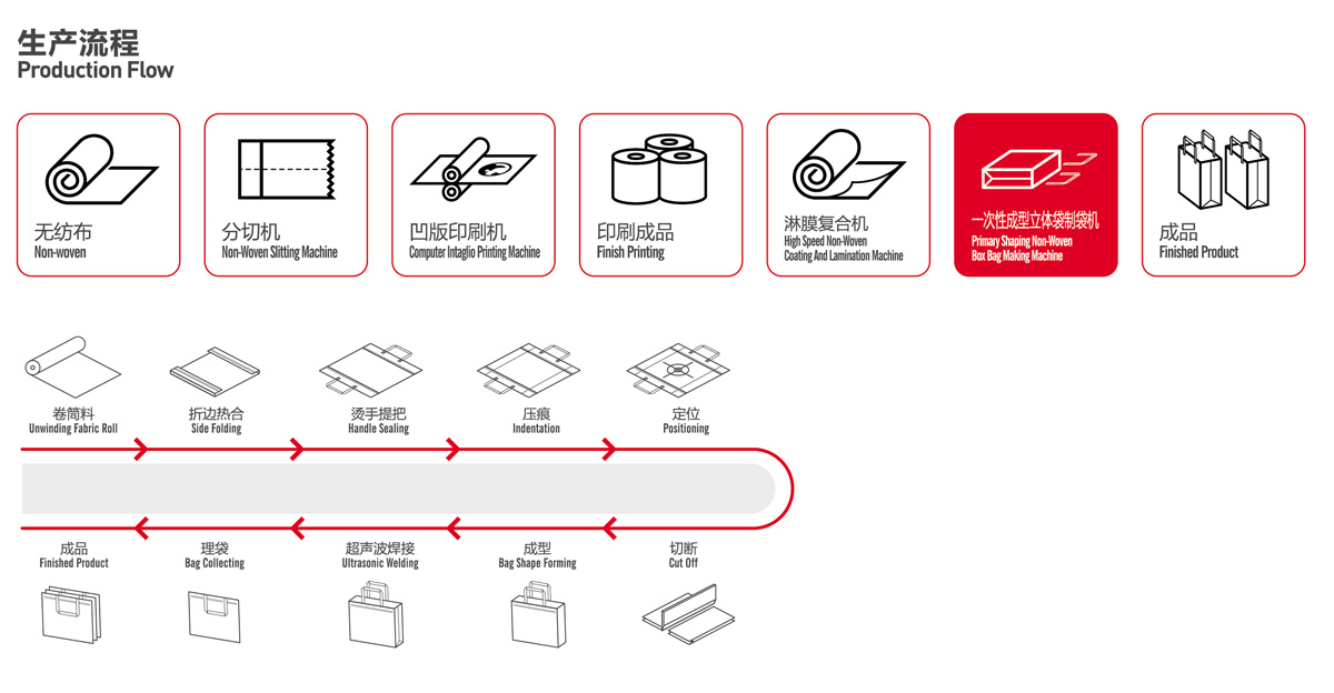 該機適用于原材料為無紡布,覆膜無紡布,專業生產一次成型覆膜的立體袋(免翻),設備生產穩定,袋子熱合部位牢固,美觀、大方,可反復利用,主要用于生產無紡布煙、酒包裝袋,無紡布飲料包裝袋,禮品袋,酒店廣告袋等無紡布袋,該機集機電為一體,運用LCD觸摸屏操作。配以步進步式定長,光電跟蹤,電腦自動定位,電腦自動糾邊,準確,平穩,自動計數,即可設定計數報警,自動燙把手,自動疊袋等工控裝置。